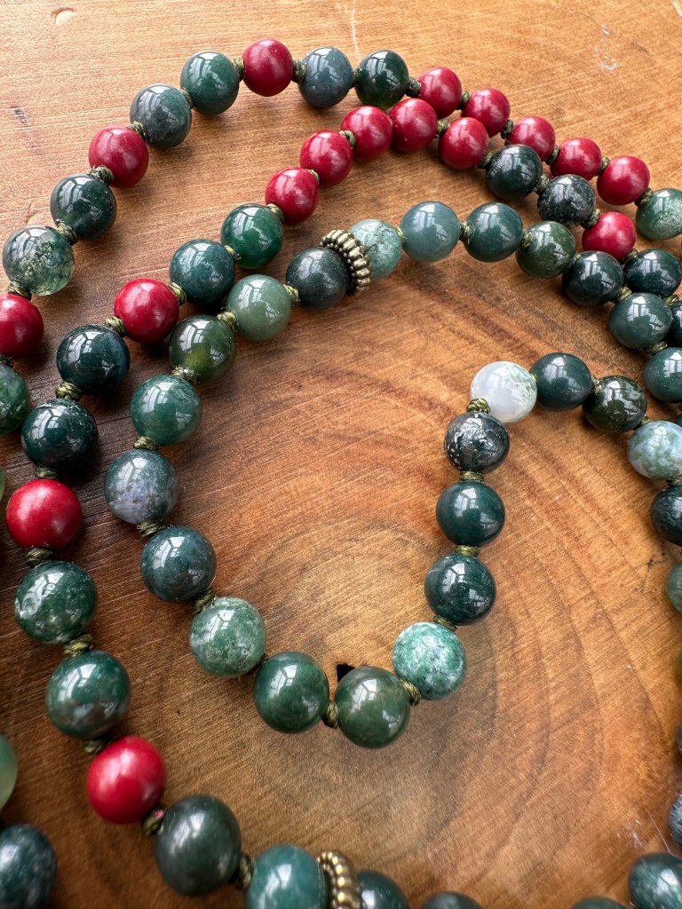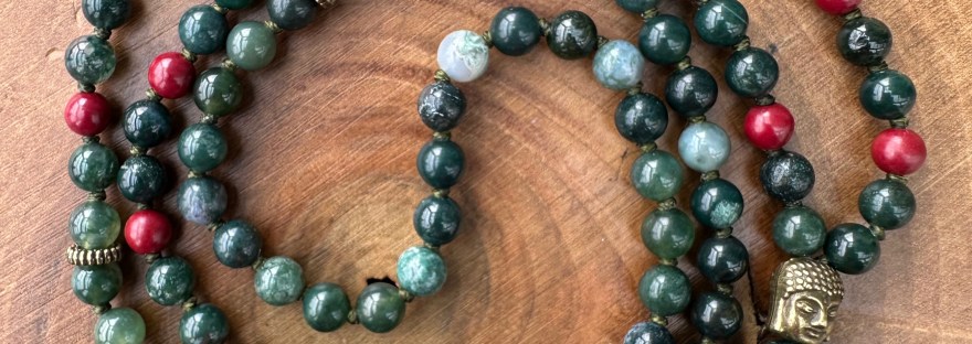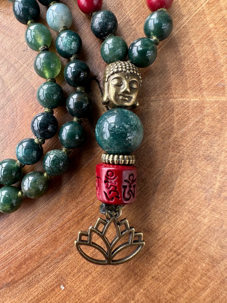 108, Doğal Taş, HazırYD108-0426-01 Nisan 16, 2026Nisan 16, 2026 Yade Dorbek Tlabar 108 Mala – 27×4 duraklı Dizi; 6mm Yosun akiği ve zincifre doğal taş ile yeşil ip düğümlü Bitiş detayı; Bronz Buda figürü, Zincifre mantra boncuğu (Tibet alfabesi – Om Mani Padme Hum), 10mm akik, bronz lotus figür. Boy: 43 cm | Ağırlık: 45,7 gr Bunu paylaş: X'te paylaş (Yeni pencerede açılır) X Facebook üzerinde paylaş (Yeni pencerede açılır) Facebook Beğen Yükleniyor... İlgili Yade Dorbek Tlabar tarafından yayınlandı Yade Dorbek Tlabar tarafından yazılan tüm gönderileri görüntüle