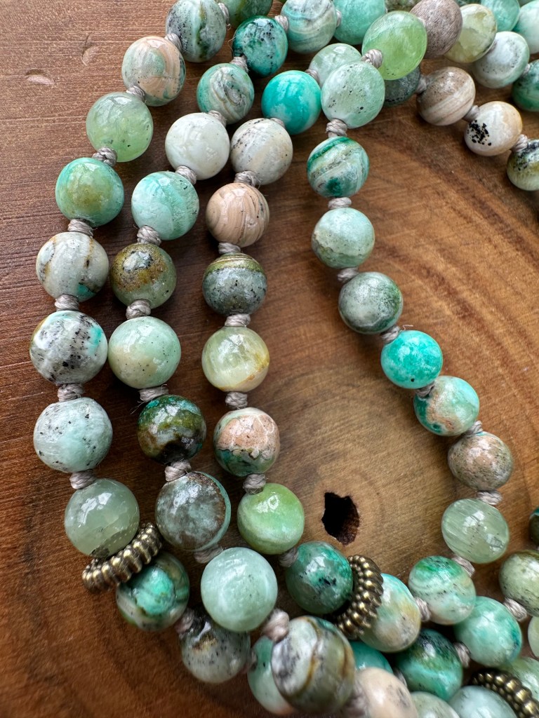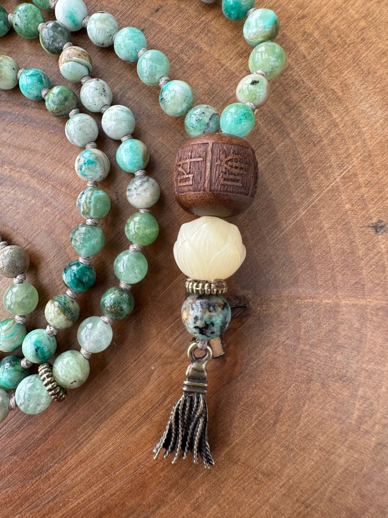108, Doğal Taş, HazırYD108-0426-04 Nisan 16, 2026Nisan 16, 2026 Yade Dorbek Tlabar 108 Mala – 27×4 duraklı Dizi; 6mm Angelite doğal taş ile bej rengi ip, düğümlü Bitiş detayı; Ahşap mantra boncuğu (Çin alfabesi – Om Mani Padme Hum), reçine lotus boncuğu, 8mm akik boncuk ve pirinç püskül figürü Boy: 45,5 cm | Ağırlık: 46,9 gr Bunu paylaş: X'te paylaş (Yeni pencerede açılır) X Facebook üzerinde paylaş (Yeni pencerede açılır) Facebook Beğen Yükleniyor... İlgili Yade Dorbek Tlabar tarafından yayınlandı Yade Dorbek Tlabar tarafından yazılan tüm gönderileri görüntüle