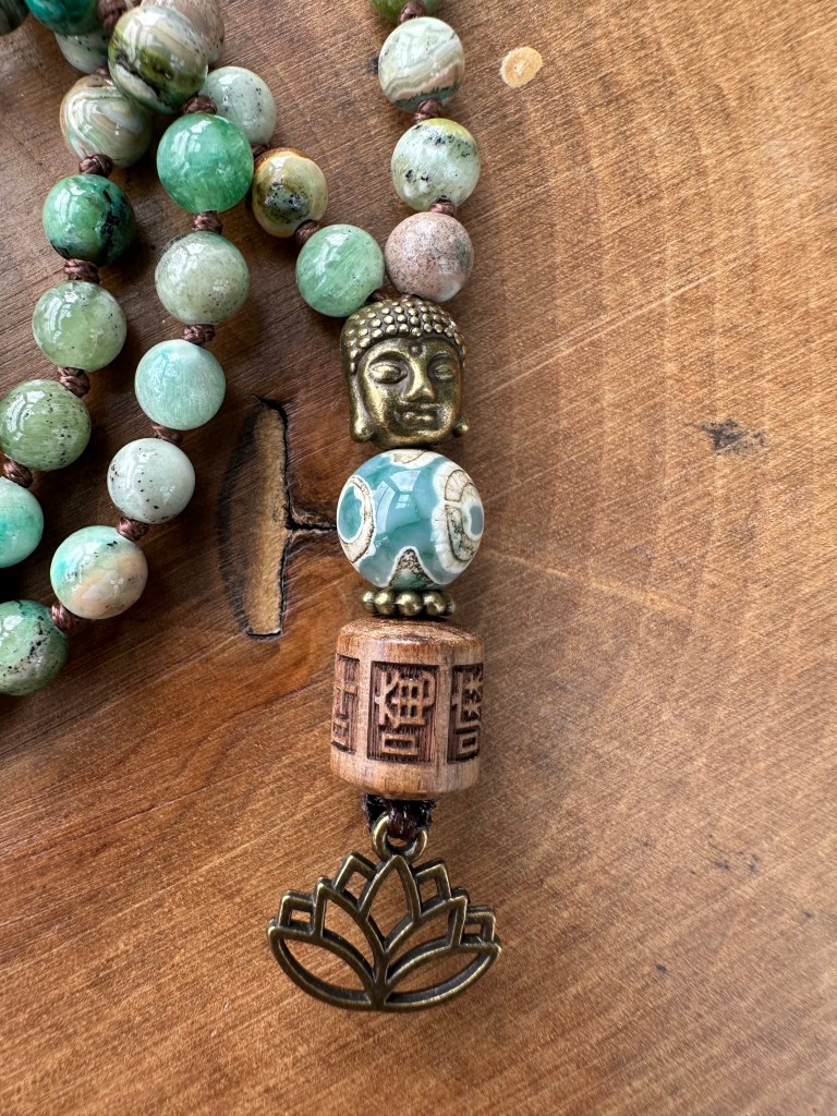 108, Doğal Taş, HazırYD108-0426-05 Nisan 16, 2026Nisan 16, 2026 Yade Dorbek Tlabar 108 Mala – 27×4 duraklı Dizi; 6mm Angelite doğal taş ile kahve rengi ip, düğümlü Bitiş detayı; Bronz Buda figürü, Tibet Dzi boncuğu, ahşap mantra boncuğu (Çin alfabesi – Om Mani Padme Hum), bronz lotus figürü Boy: 44,5 cm | Ağırlık: 46,5 gr Bunu paylaş: X'te paylaş (Yeni pencerede açılır) X Facebook üzerinde paylaş (Yeni pencerede açılır) Facebook Beğen Yükleniyor... İlgili Yade Dorbek Tlabar tarafından yayınlandı Yade Dorbek Tlabar tarafından yazılan tüm gönderileri görüntüle