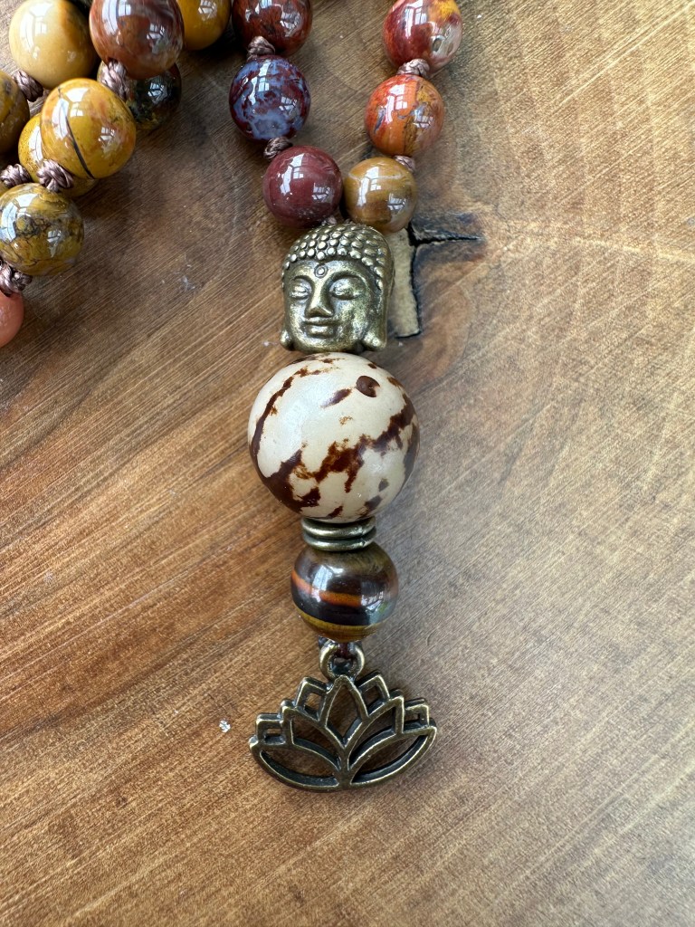 108, Doğal Taş, HazırYD108-0426-13 Nisan 16, 2026Nisan 16, 2026 Yade Dorbek Tlabar 108 Mala – 27×4 duraklı Dizi; 6mm kırmızı kanlı akik (fighting blood agate) doğal taş ile kahve rengi ip, düğümlü Bitiş detayı; Bronz Buda figürü, kemik boncuk, kaplan gözü boncuk, bronz lotus figürü Boy: 46 cm | Ağırlık: 46,9 gr Bunu paylaş: X'te paylaş (Yeni pencerede açılır) X Facebook üzerinde paylaş (Yeni pencerede açılır) Facebook Beğen Yükleniyor... İlgili Yade Dorbek Tlabar tarafından yayınlandı Yade Dorbek Tlabar tarafından yazılan tüm gönderileri görüntüle